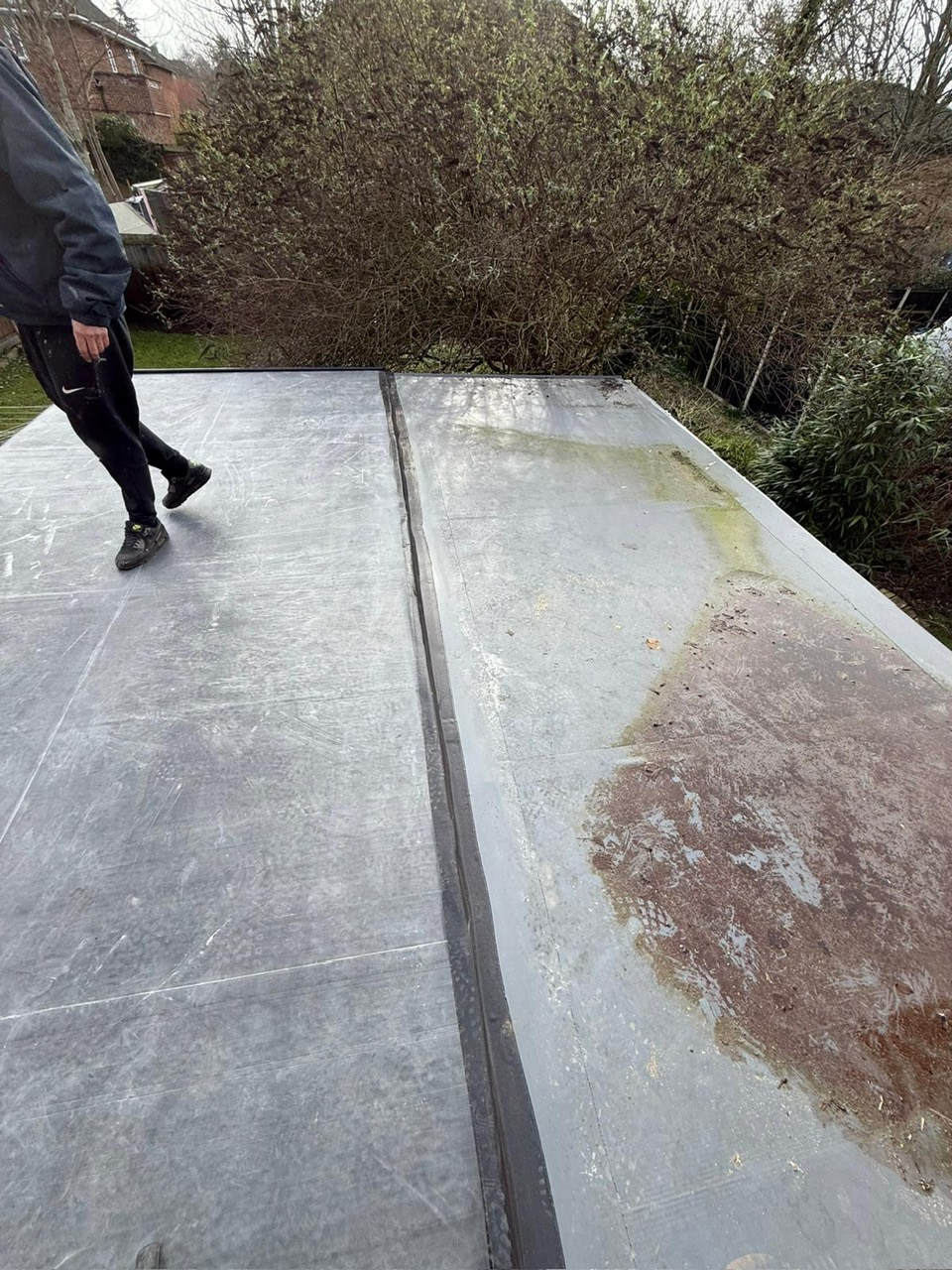 When our team came out to inspect, it was clear a repair wasn’t the right answer. The decking underneath had taken moisture damage over time, and critically, the roof had almost no fall to it. Water was pooling instead of draining, which had been accelerating the damage from the start. Fixing the surface without addressing that underlying problem would have meant the same issues returning within a few years.